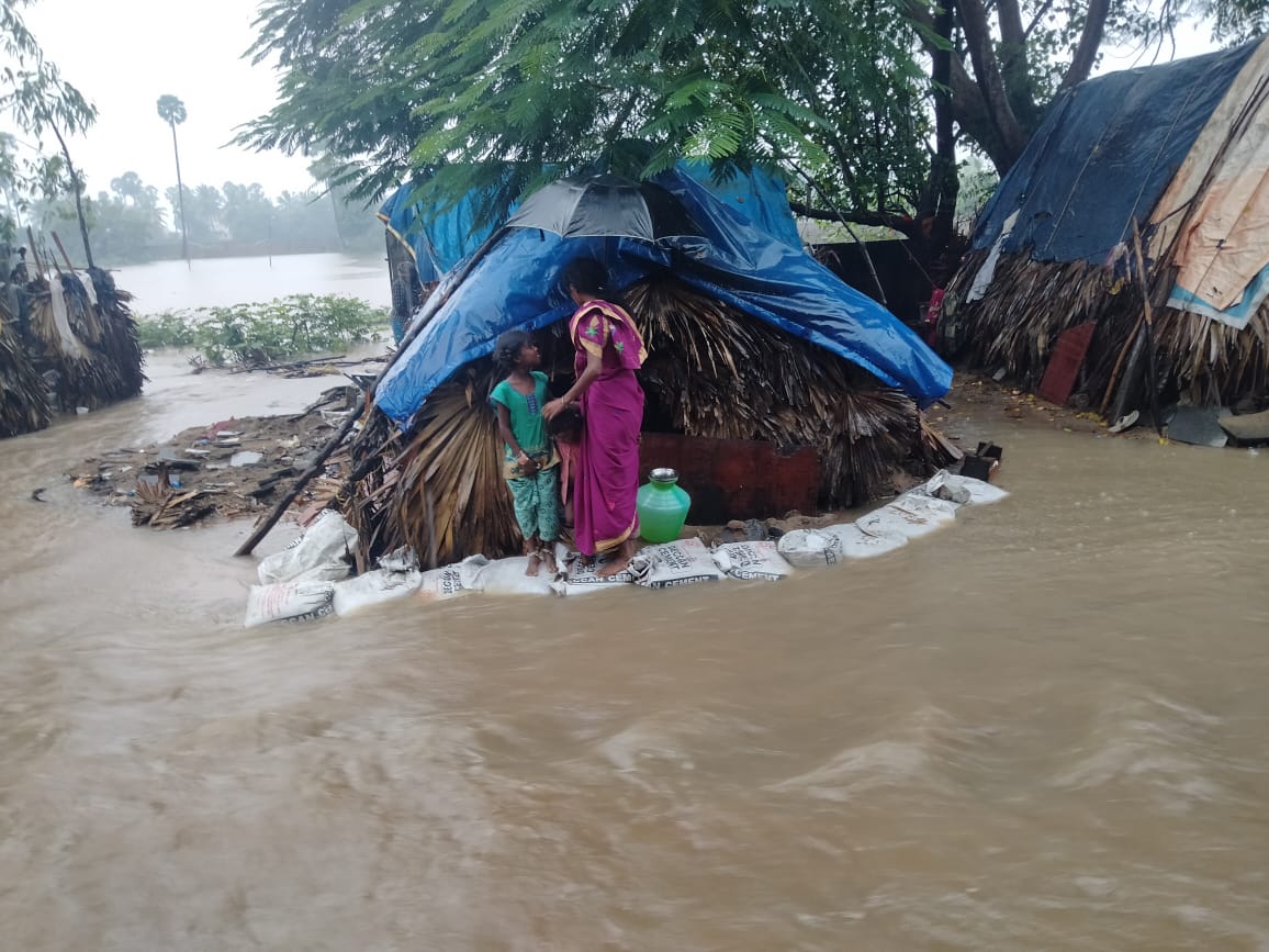 Während der Monsun-Zeit wird die Siedlung häufig überflutet. Es ist wieder mal soweit. Gerade haben wir ein paar Bilder erhalten.